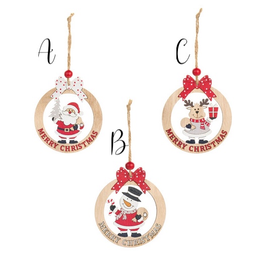 Bola em Madeira para Pendurar. Merry Christmas . Nuvole di Stoffa
