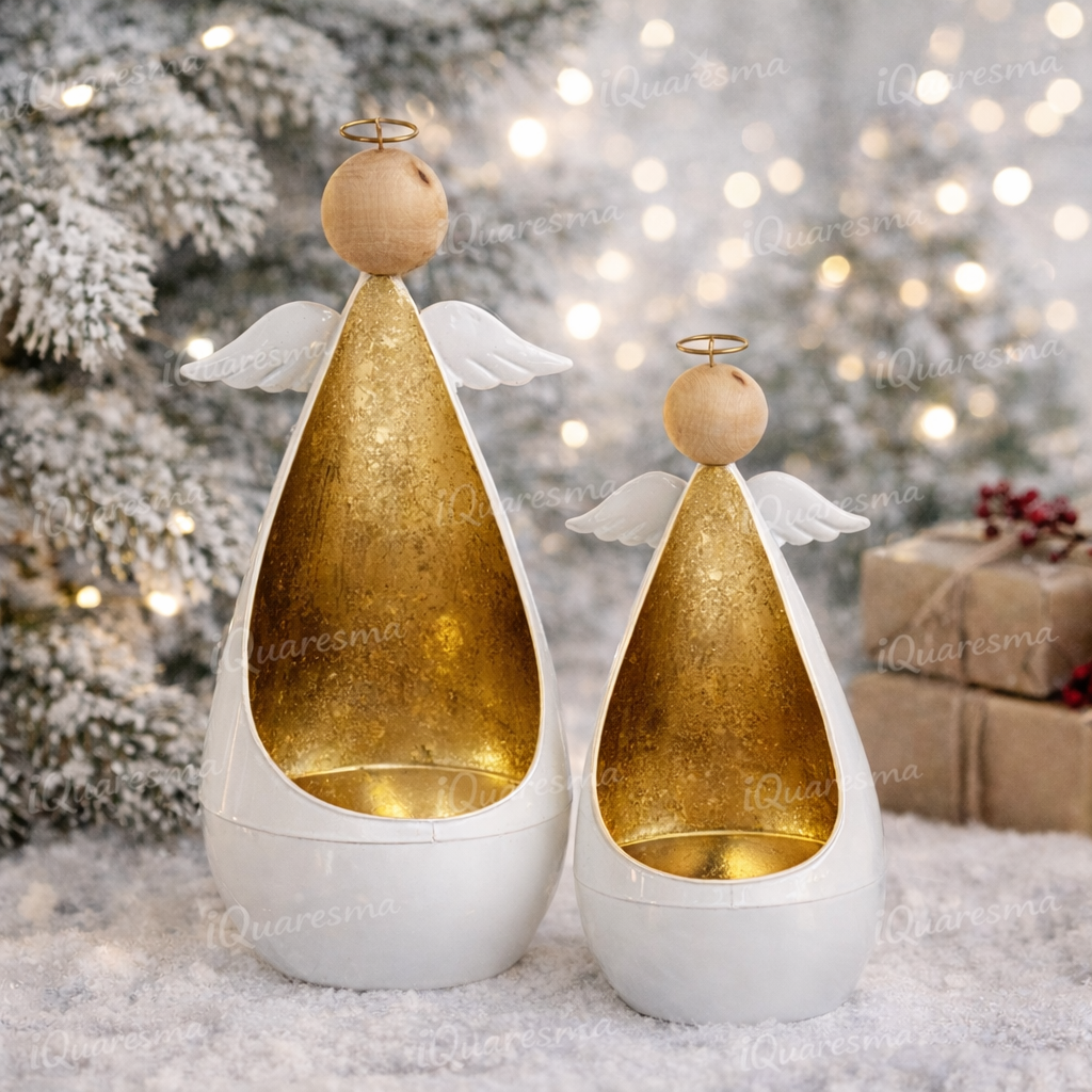 Lindos Anjinhos em Metal Branco e Dourado para colocar uma vela, para decoração de natal ou para usar durante todo o ano.
