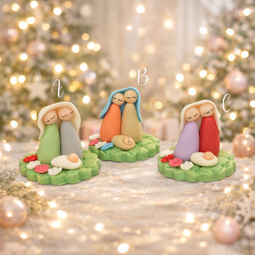 Presépio super fofo e delicado, é uma peça especial, moldada em Biscuit.