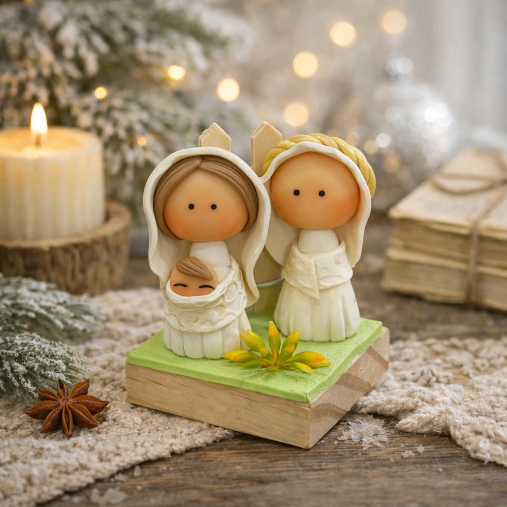 Presépio super fofo e delicado, é uma peça especial, moldada em fimo.