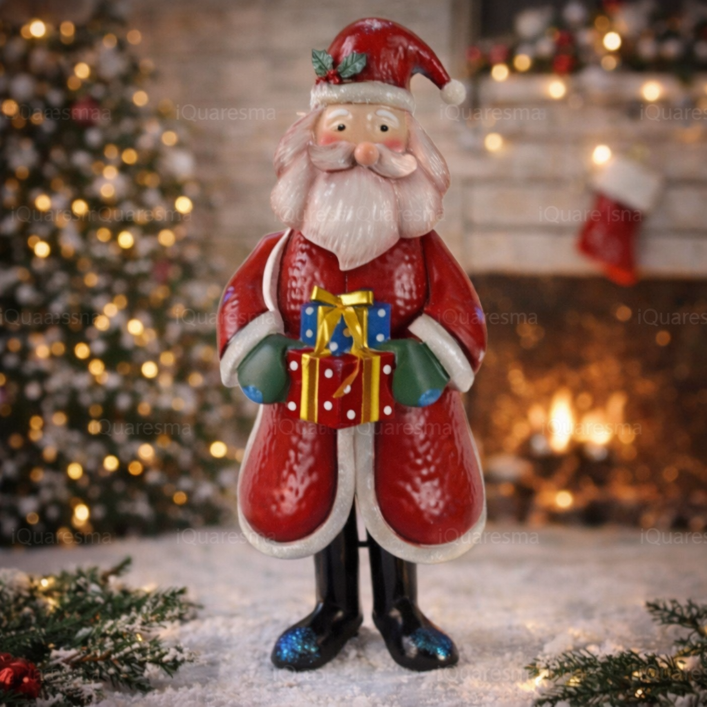 Lindo Pai natal em Metal com presentes, com muitos pormenores e de qualidade superior.