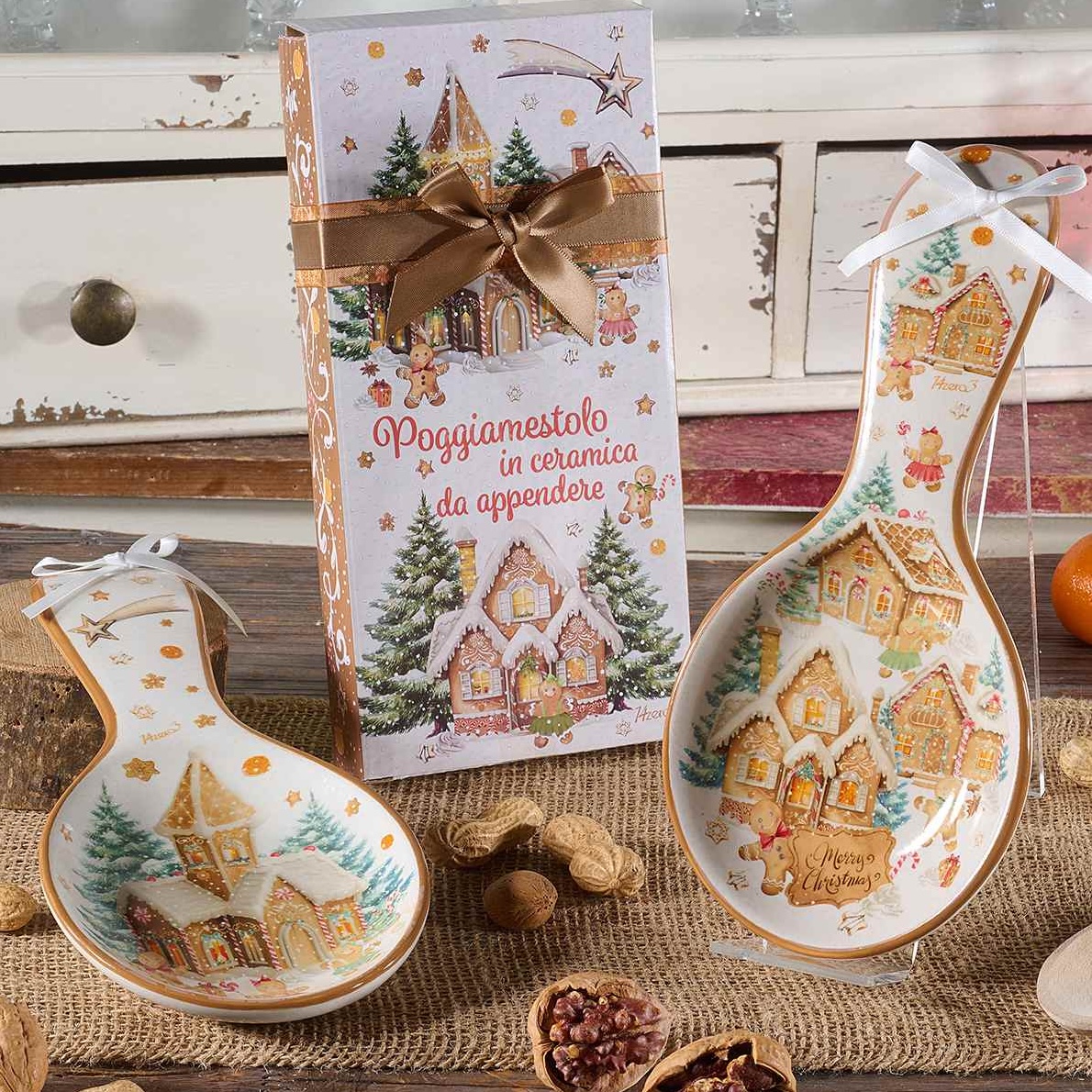 Descança Colheres, ou pequena travessa em cerâmica, com o tema das bolachas de gengibre.