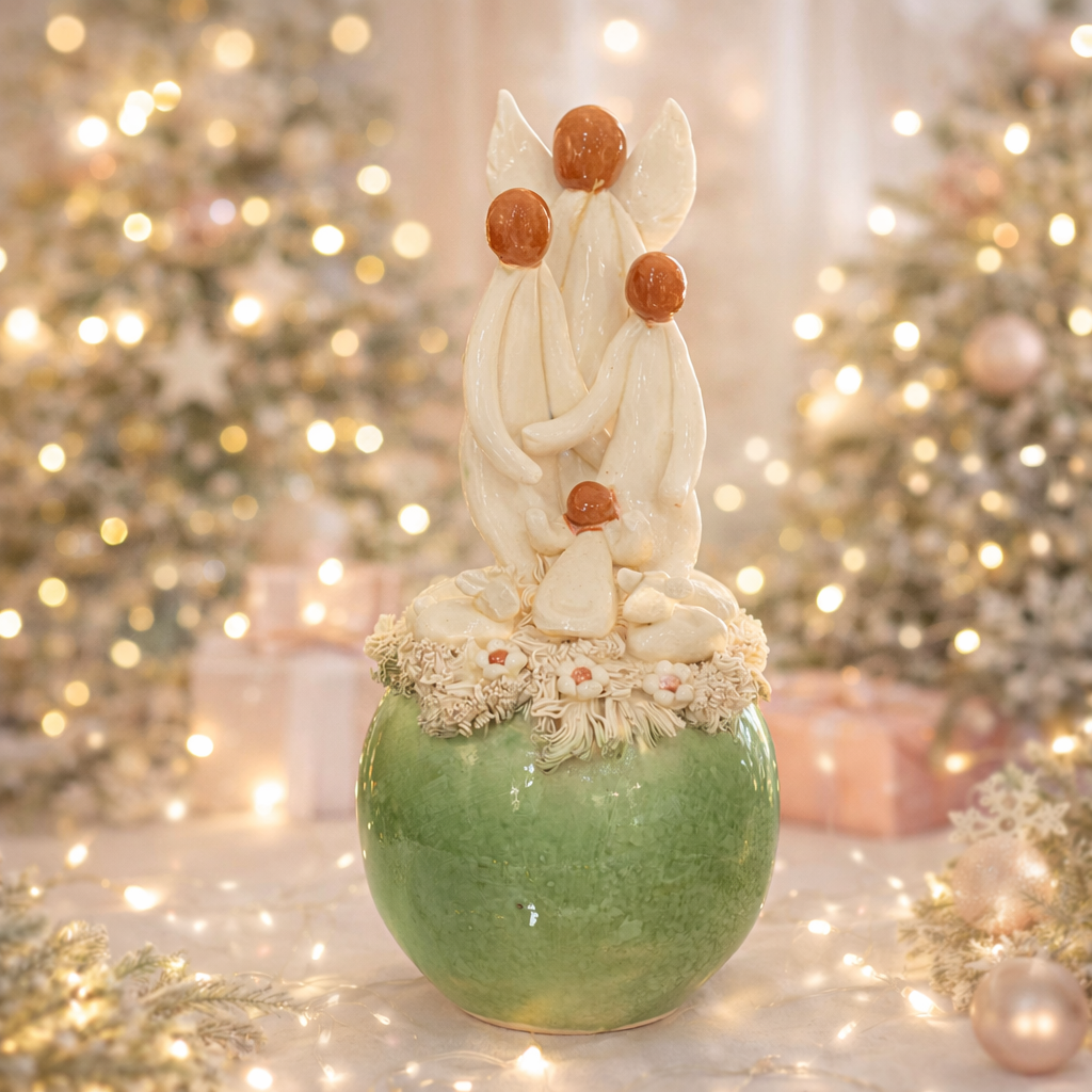 Presépio super fofo e delicado, é uma peça única, moldada em barro, e vidrada.