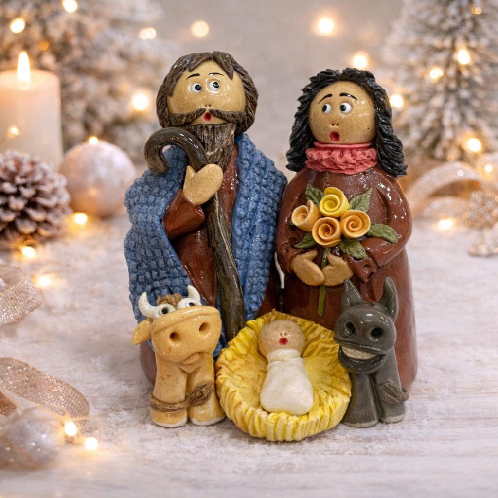 Presépio super fofo e delicado, é uma peça diferente e original, modelada em barro, e vidrada.