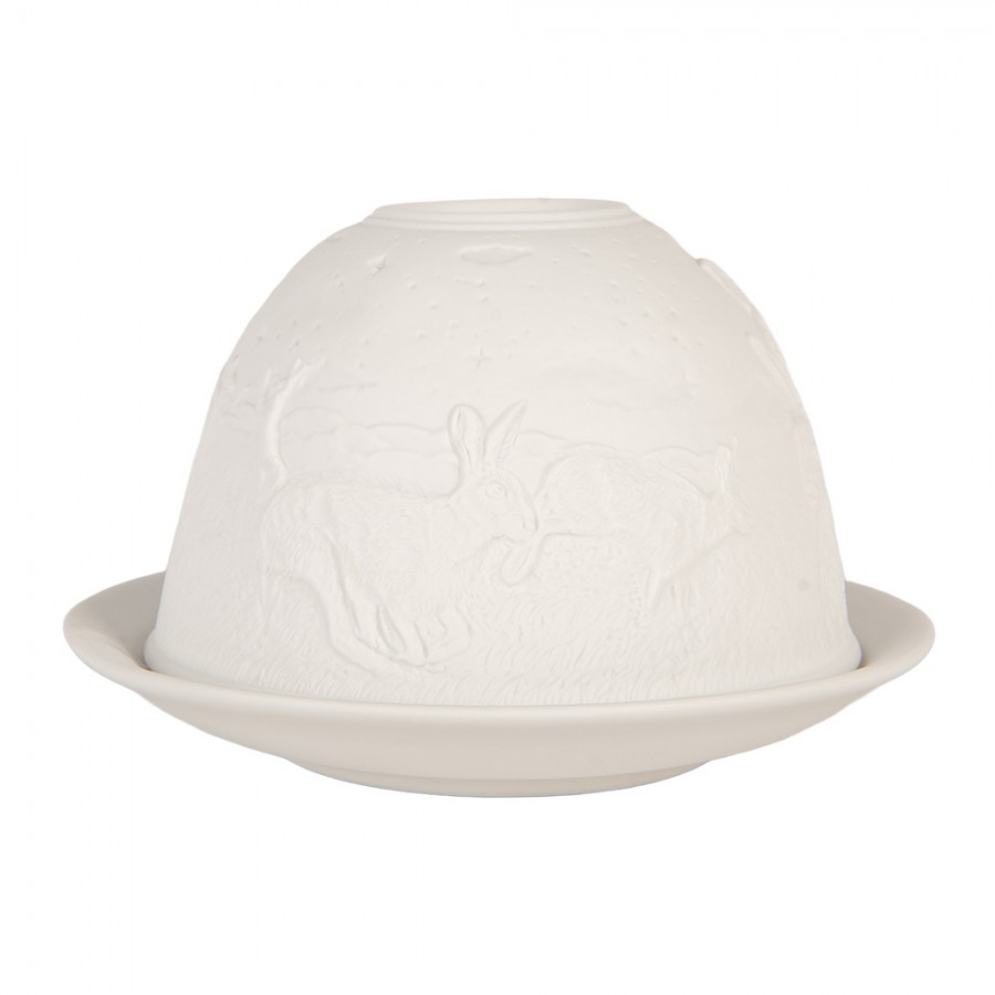 Suporte Tealight Ø 12X8 cm Coelhinhos Porcelana Biscuit . Clayre & Eef 6CE2210