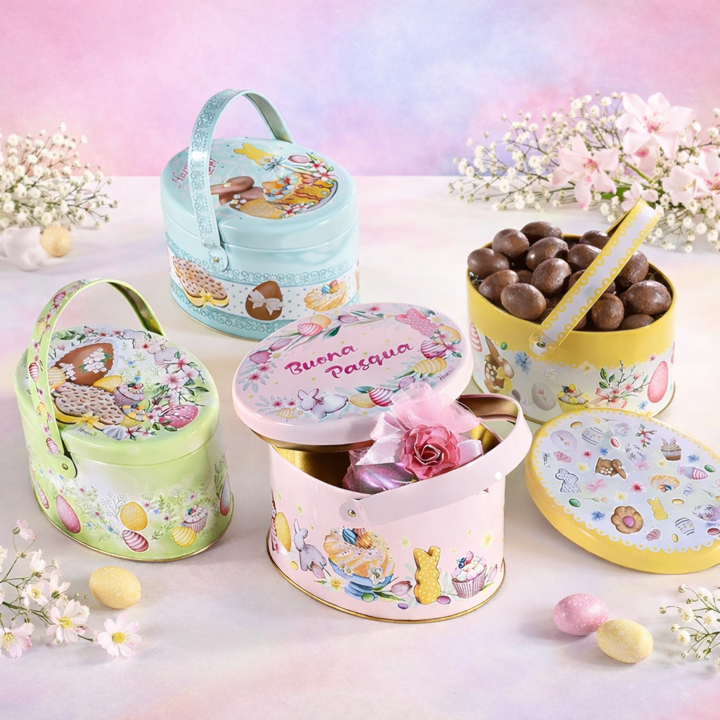 Caixa/Cesto Metal Oval c/ Alça . Páscoa