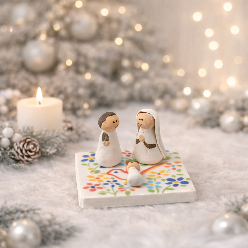 Presépio super fofo e delicado, é uma peça especial, moldada em barro, e pintada à mão.