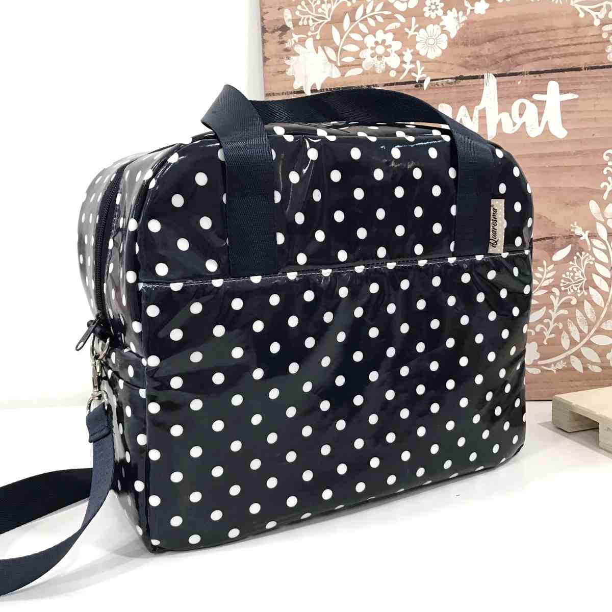 Lancheira térmica com bolsos laterais, alça ajustável e interior plastificado.