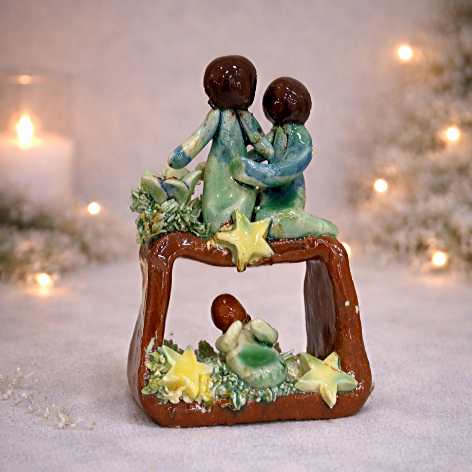 Presépio super fofo e delicado, é uma peça única, moldada em barro, e vidrada.