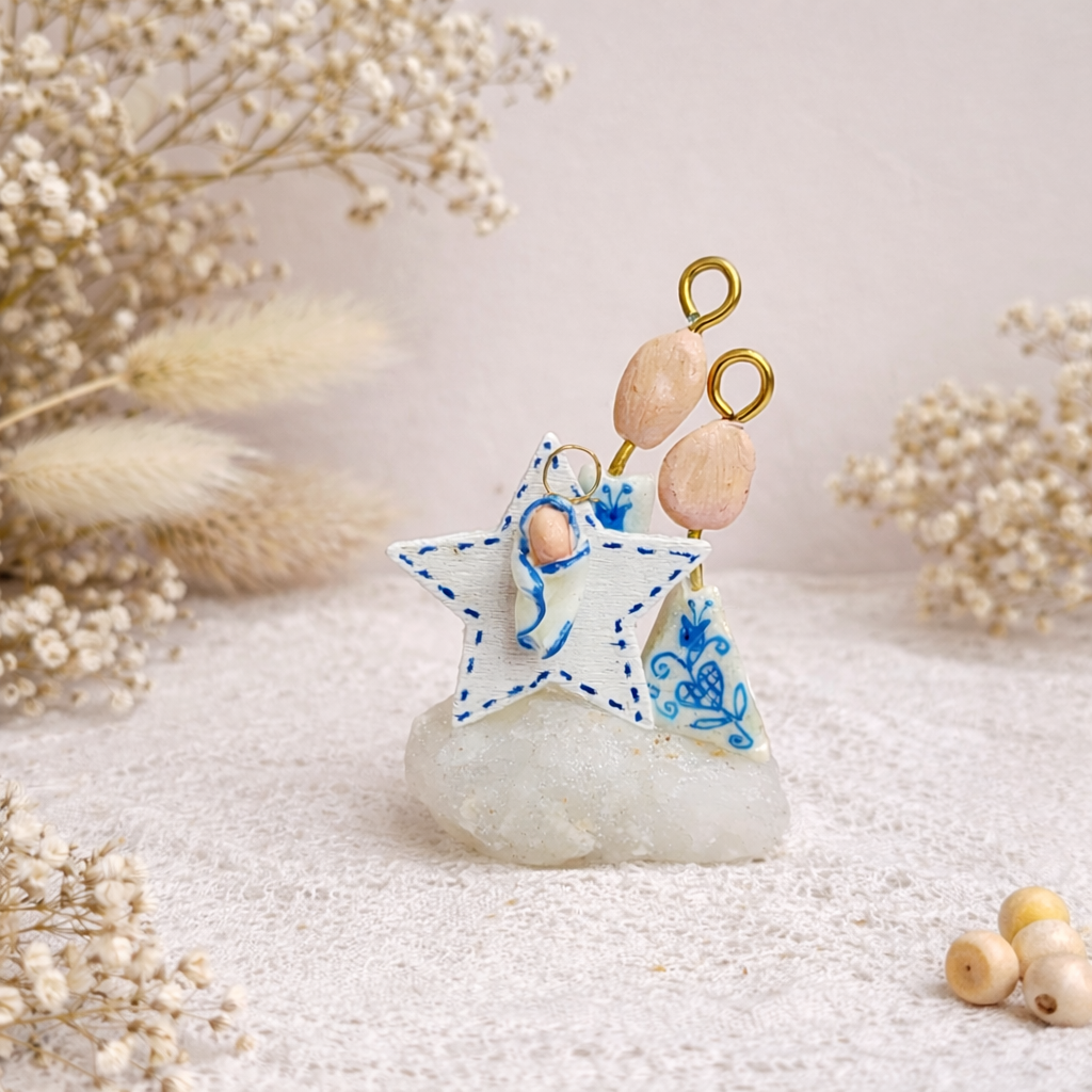 Presépio super fofo e delicado, é uma peça única, moldada em porcelana fria, ilustrada e pintada à mão