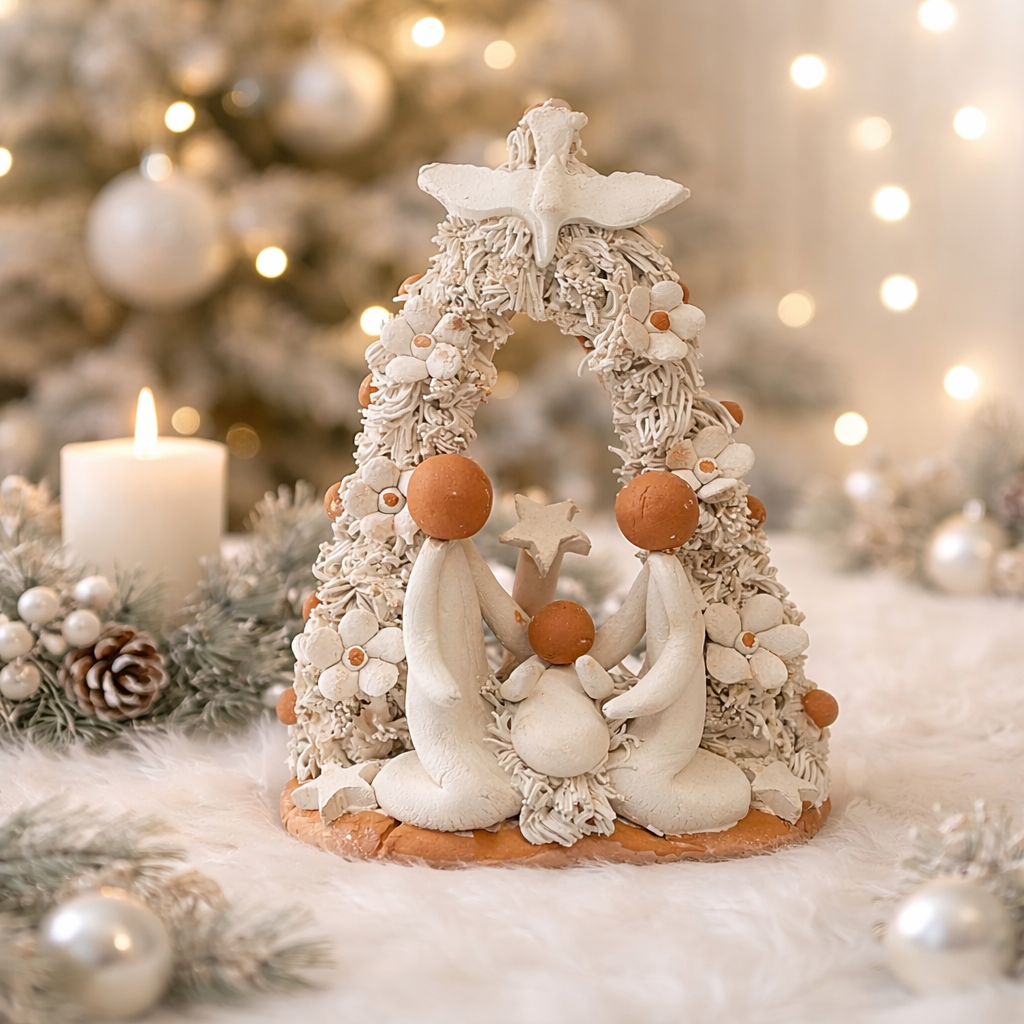 Presépio super fofo e delicado, é uma peça única, moldada em barro.