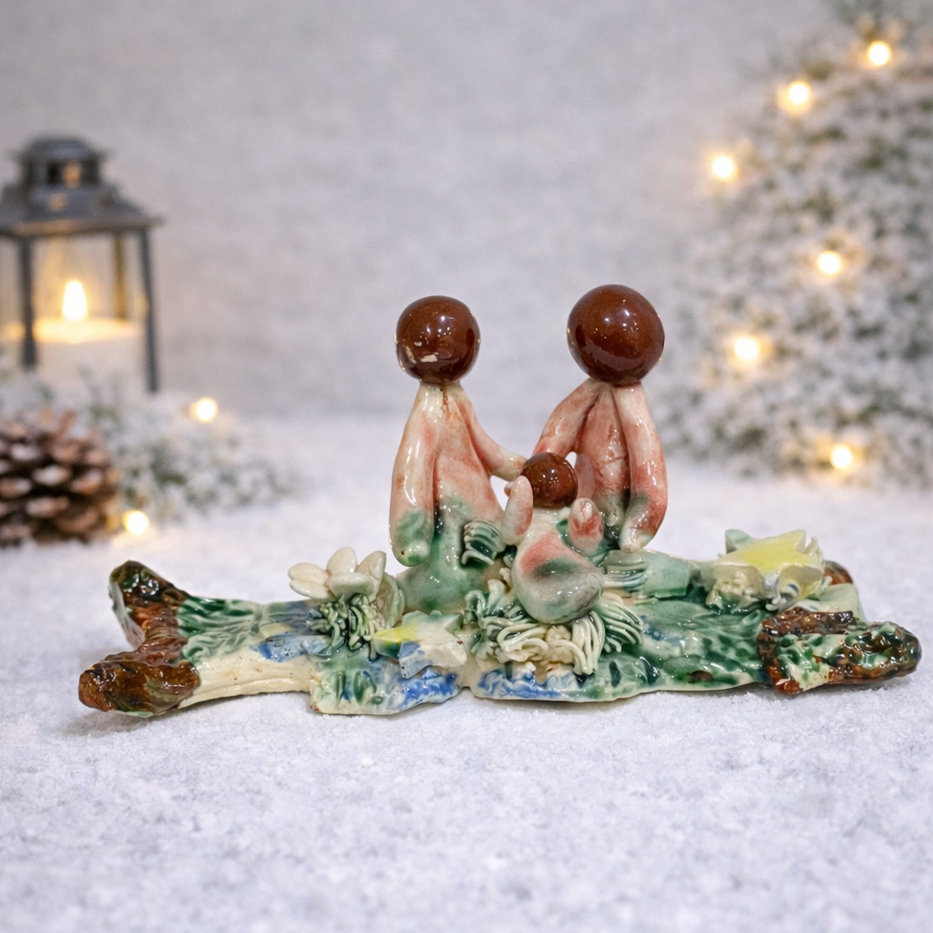Presépio super fofo e delicado, é uma peça única, moldada em barro, e vidrada.