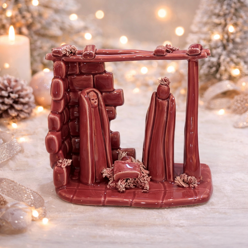 Presépio Cabana Estelizado Rosa . Artesanal . Peça de Autor