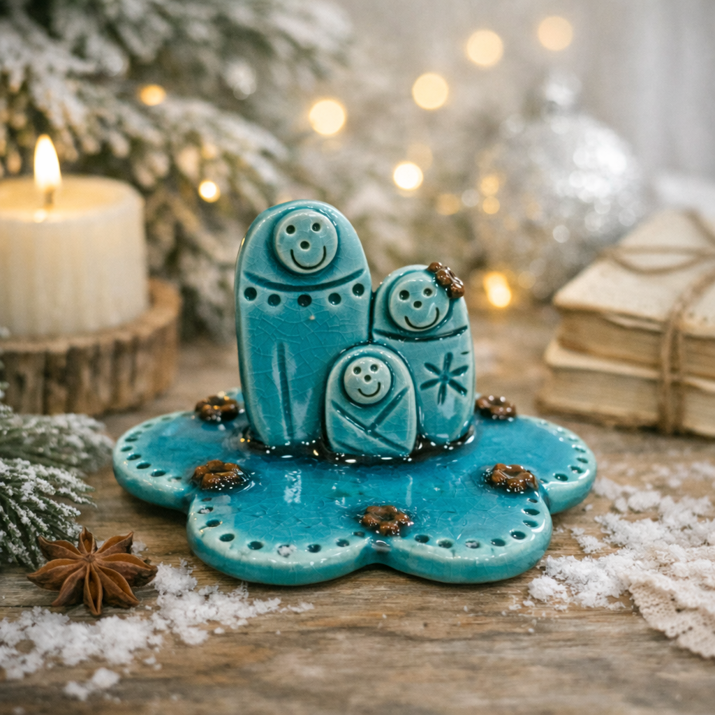 Presépio super fofo e delicado, é uma peça especial, modelada em barro, e vidrada.