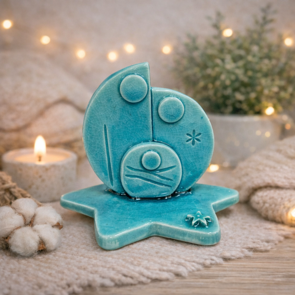 Presépio Estilizado Turquesa . Artesanal . Peça de Autor