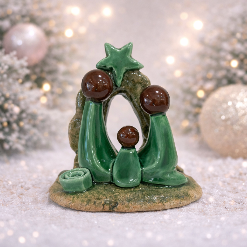 Presépio super fofo e delicado, é uma peça única, moldada em barro, e vidrada.