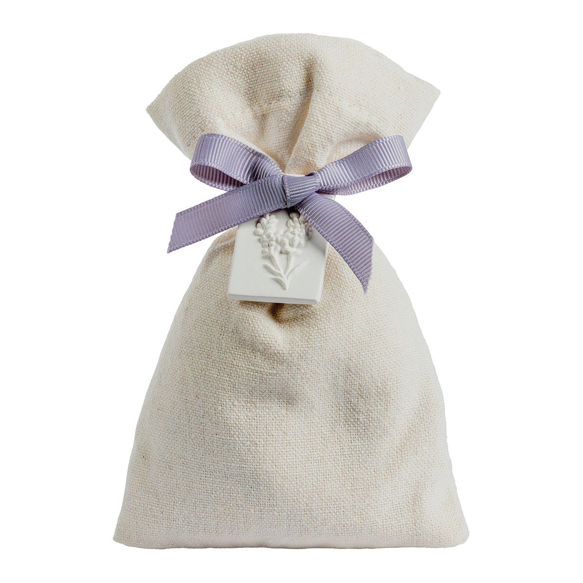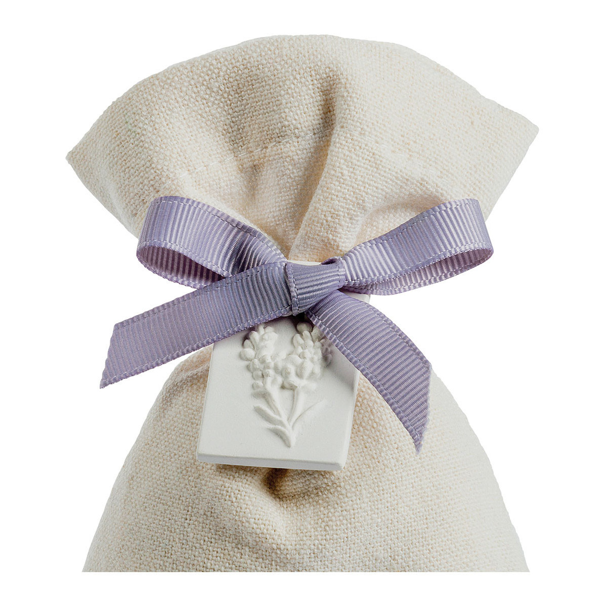 Esta delicada bolsa Secret d'Armoire vestida com uma decoração de gesso perfumado e um elegante laço espalha delicadamente seu perfume em todos os pequenos espaços, como armários, gavetas, malas e carros.