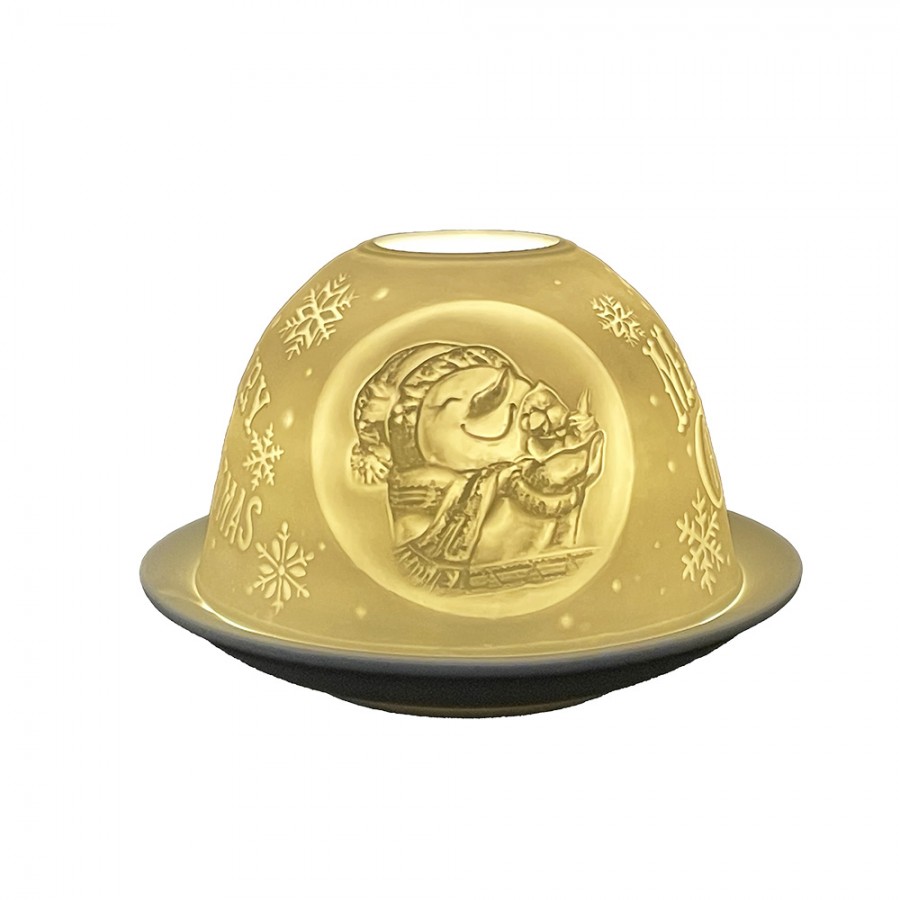 Muito elegante com desenho Natal, este castiçal em litofano trará um toque de romance à sua decoração.