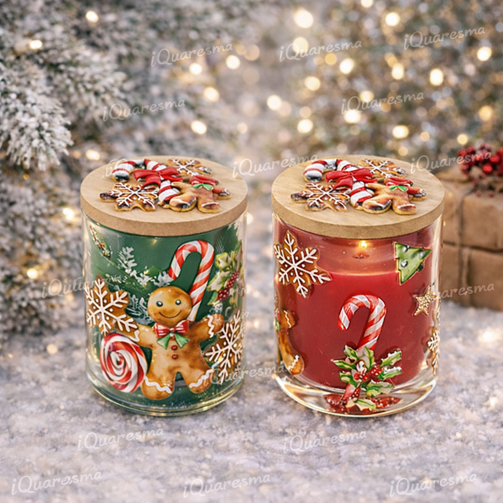 Linda vela, para decoração de natal com tema Bolacha de Gengibre.